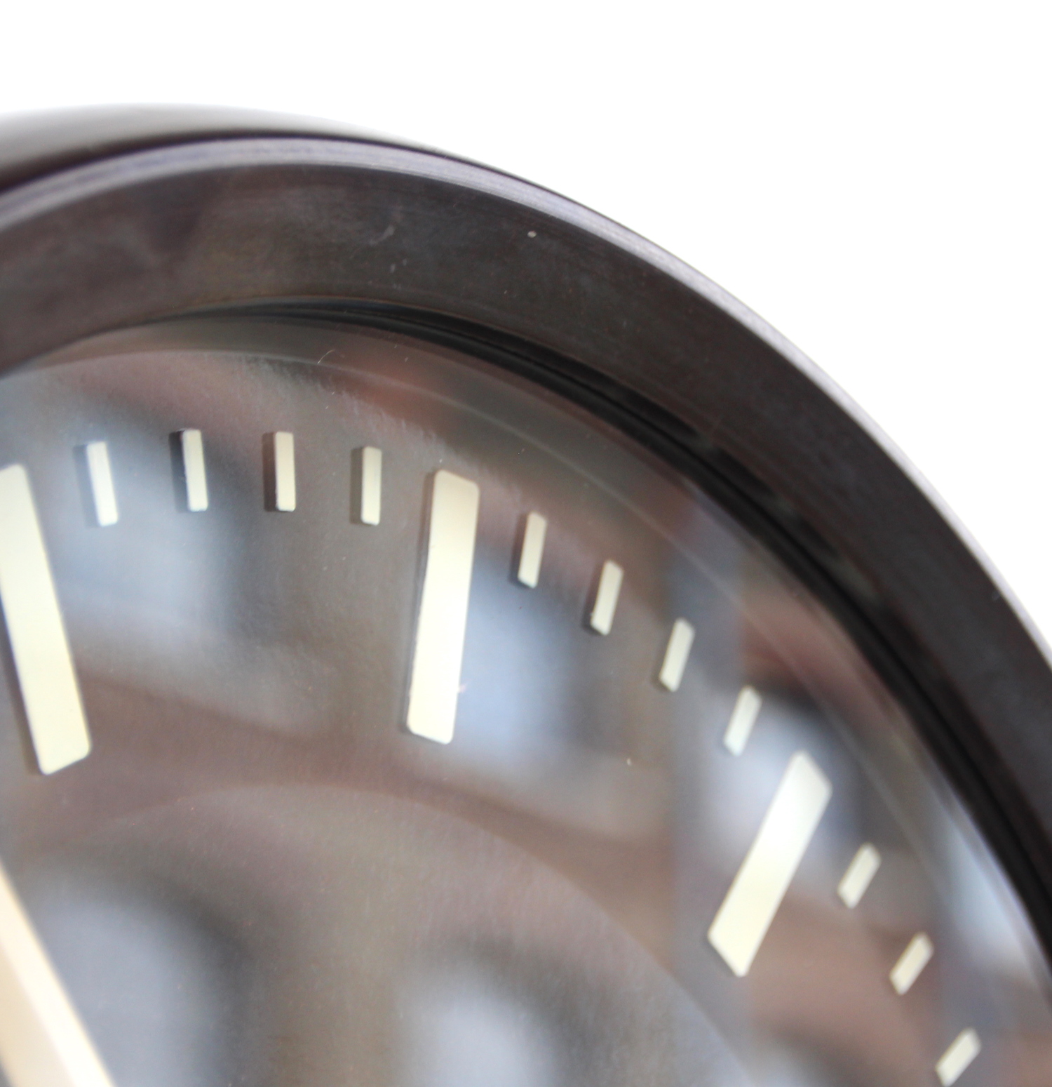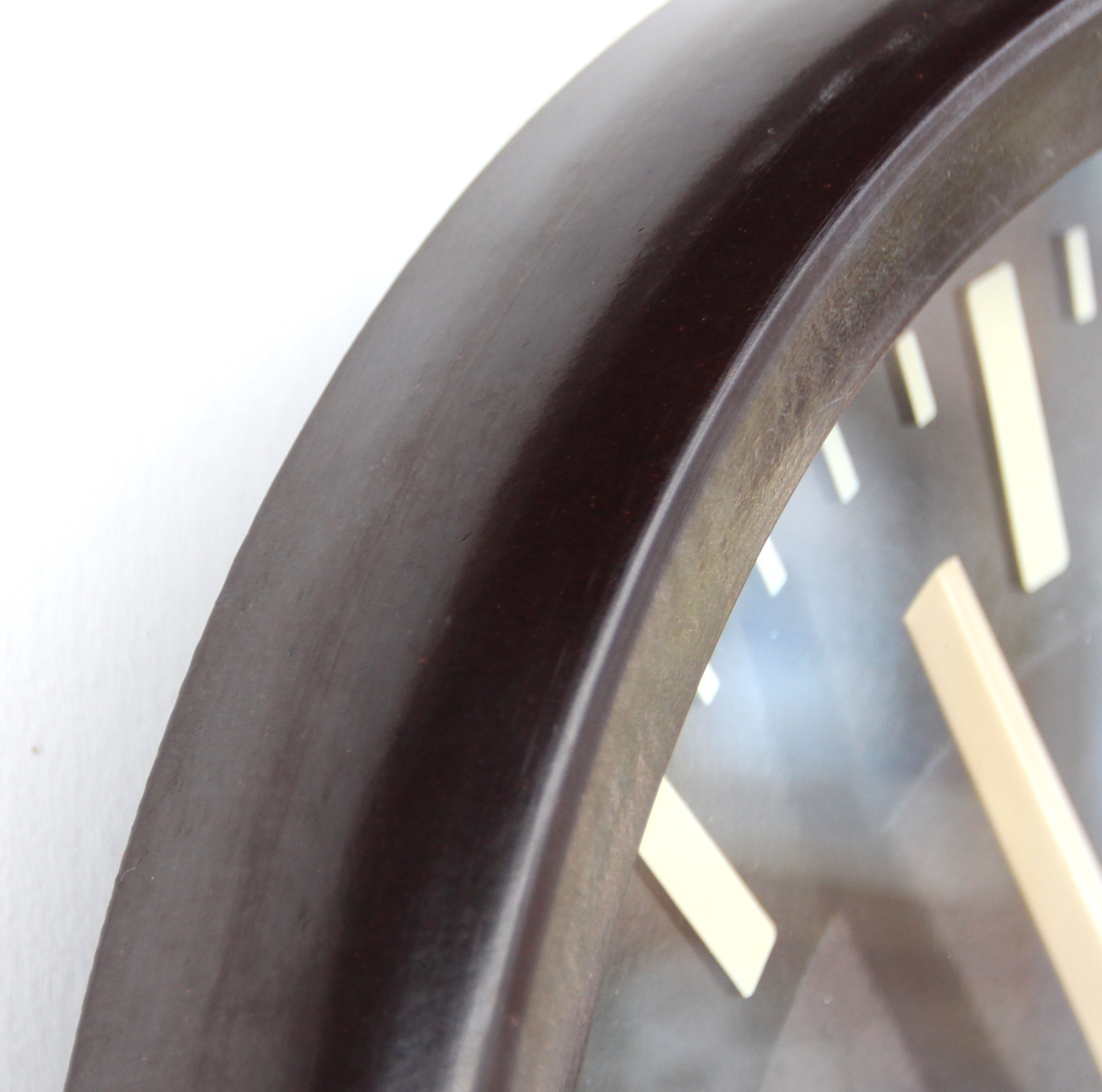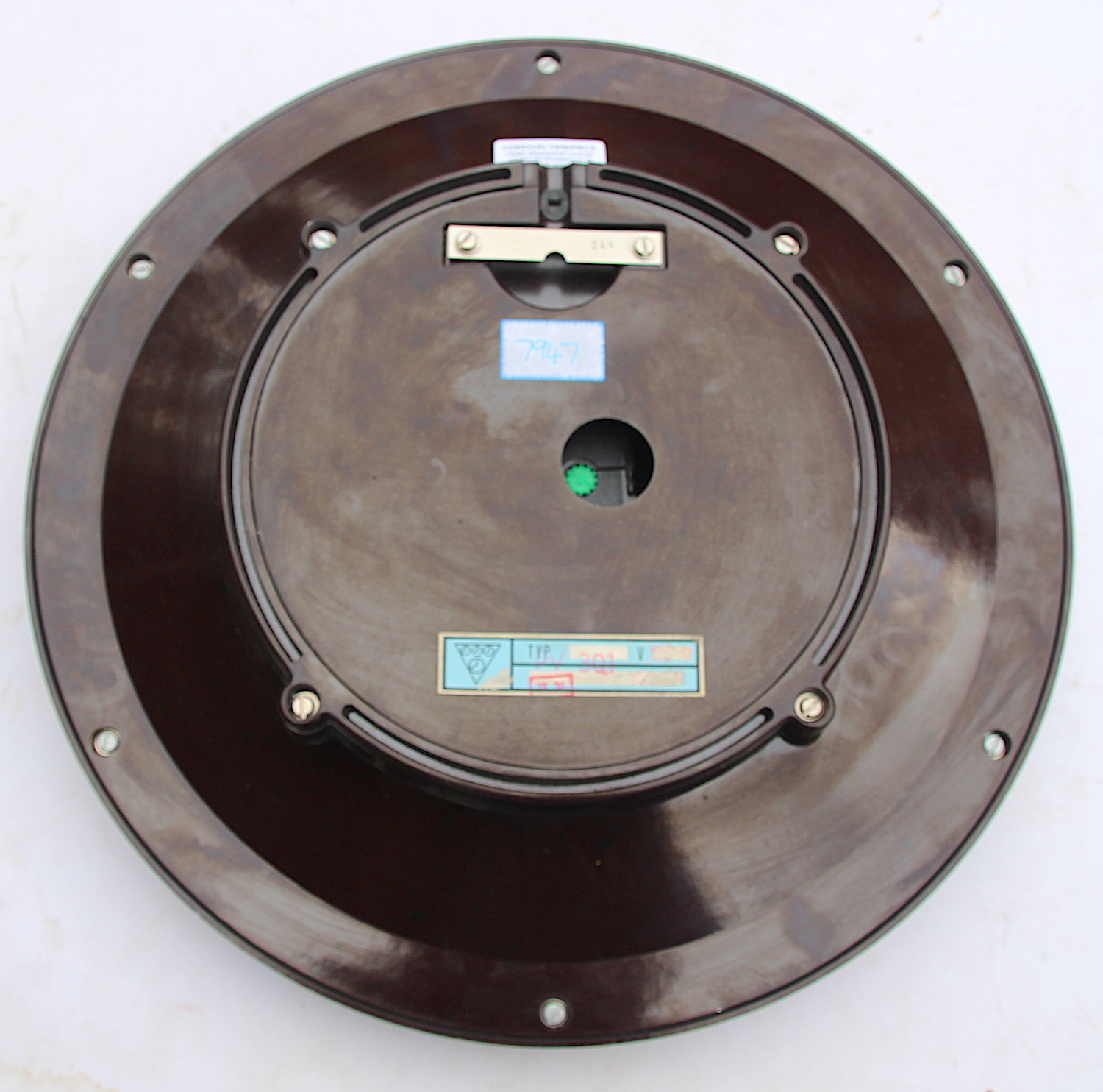 The Bakelite case is in superb overall condition. The dial which is not black, but very dark brown Bakelite is also in superb condition. The hands are all in good order. The glass is in good order with a few light marks commensurate with its age.