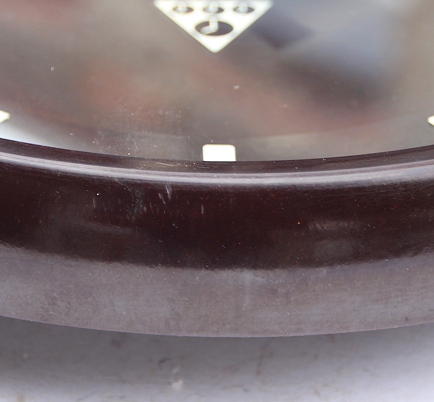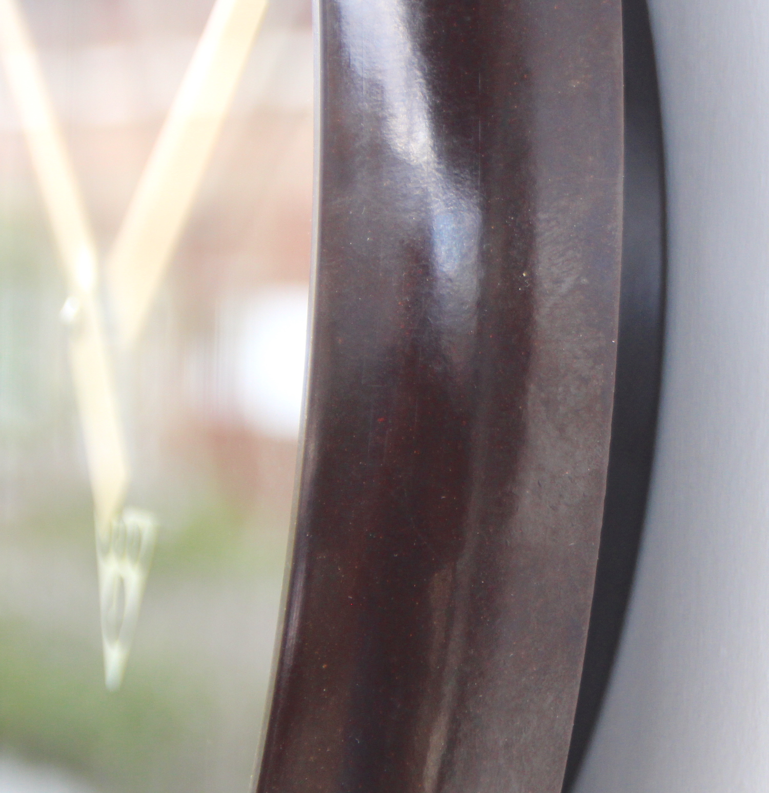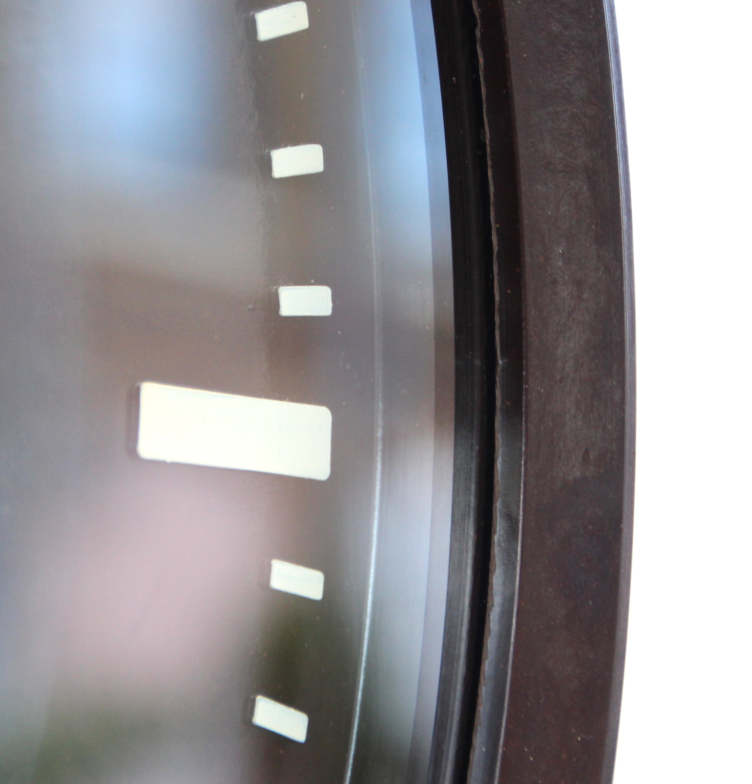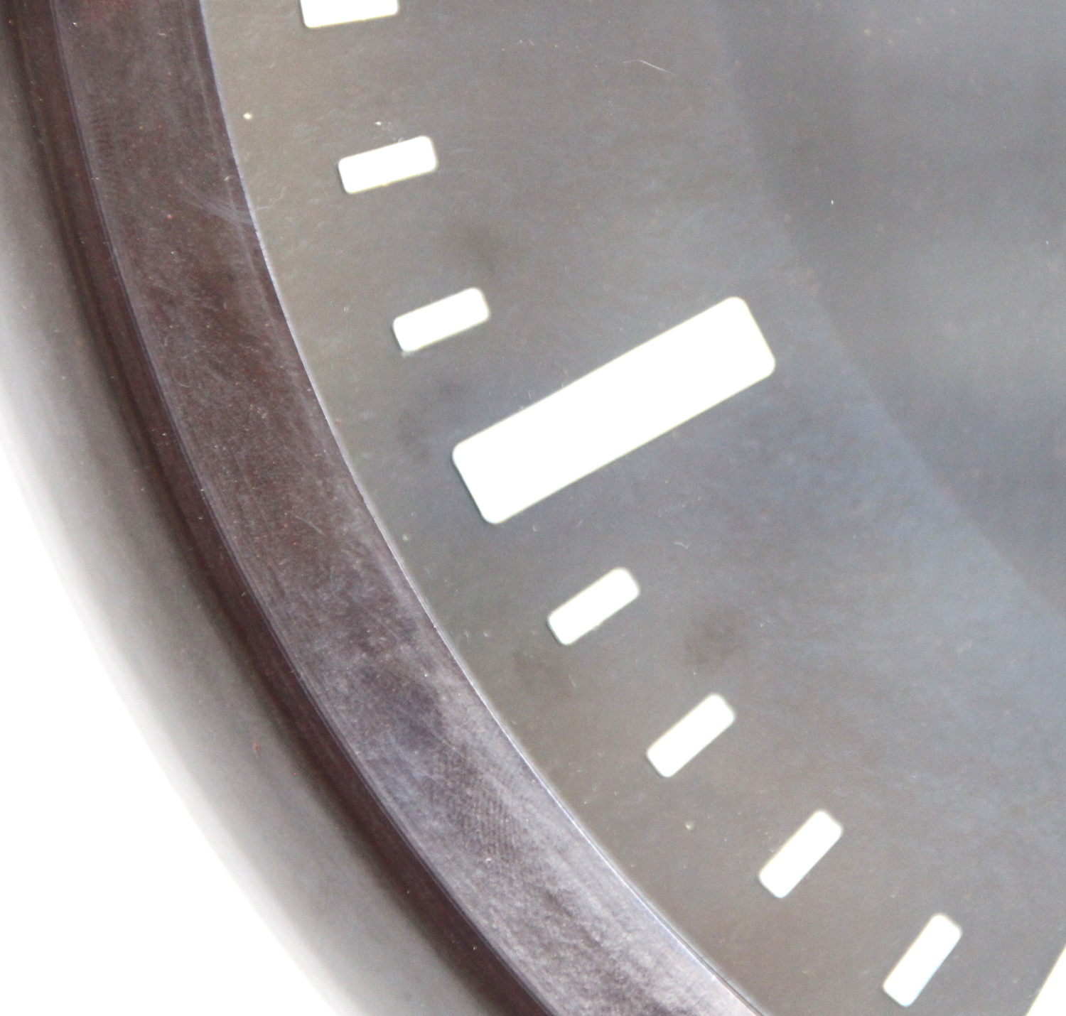 The Bakelite case is in superb overall condition. The dial which is not black, but very dark brown Bakelite is also in superb condition. The hands are all in good order. The glass is in good order with a few light marks commensurate with its age.