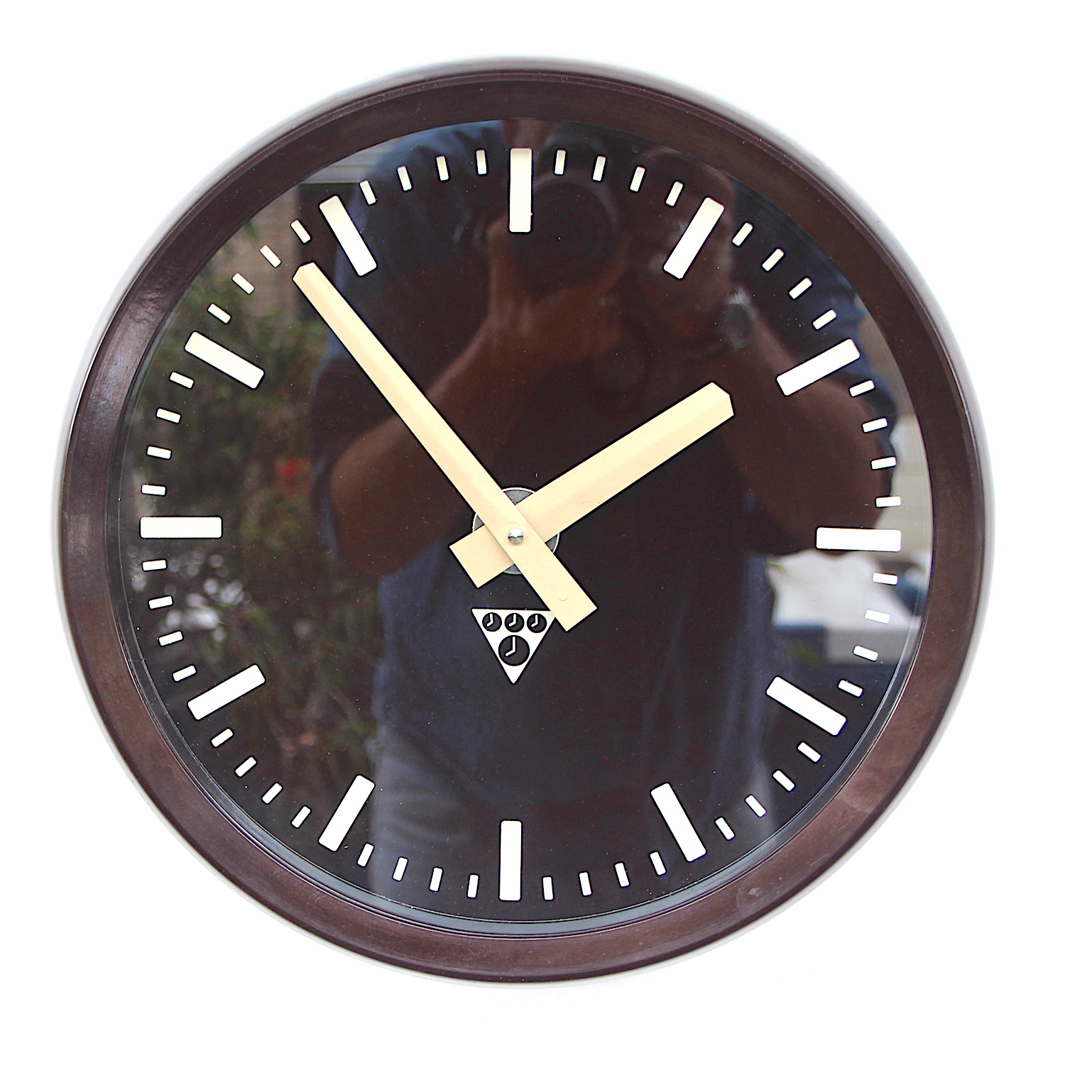 A rare example of these commercial vintage wall clocks with the dark face. This model is in exceptionally fine order. Made in Czechoslovakia in the 1970s.