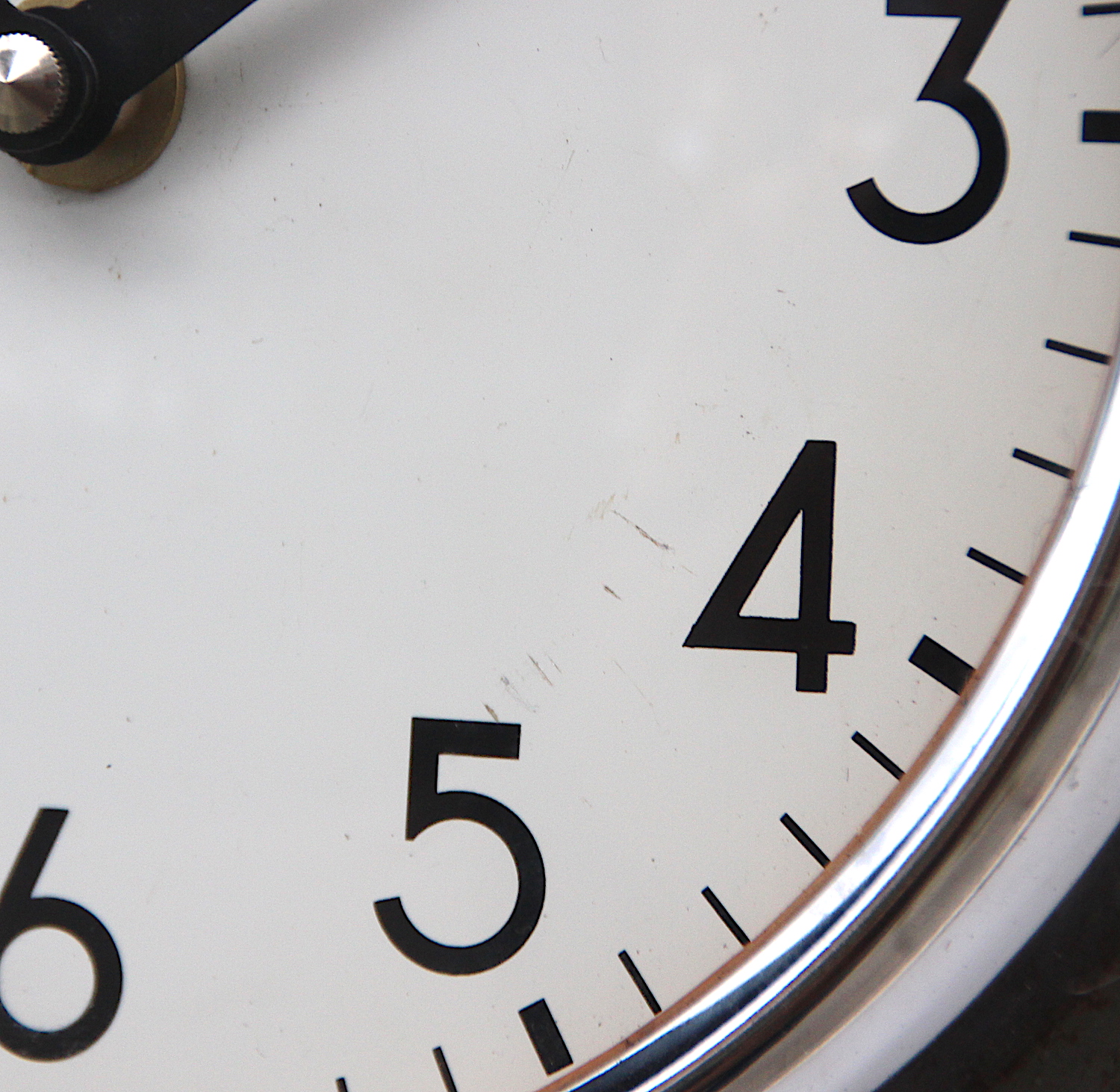The bare steel case is in good overall condition. There are a few signs of pitting wear but no damage. The dial is a bright white colour and shows a little wear. The hands are all in good order showing some wear. The chromed bezel is in nice condition. The convex glass is in good order with a few light marks commensurate with its age.