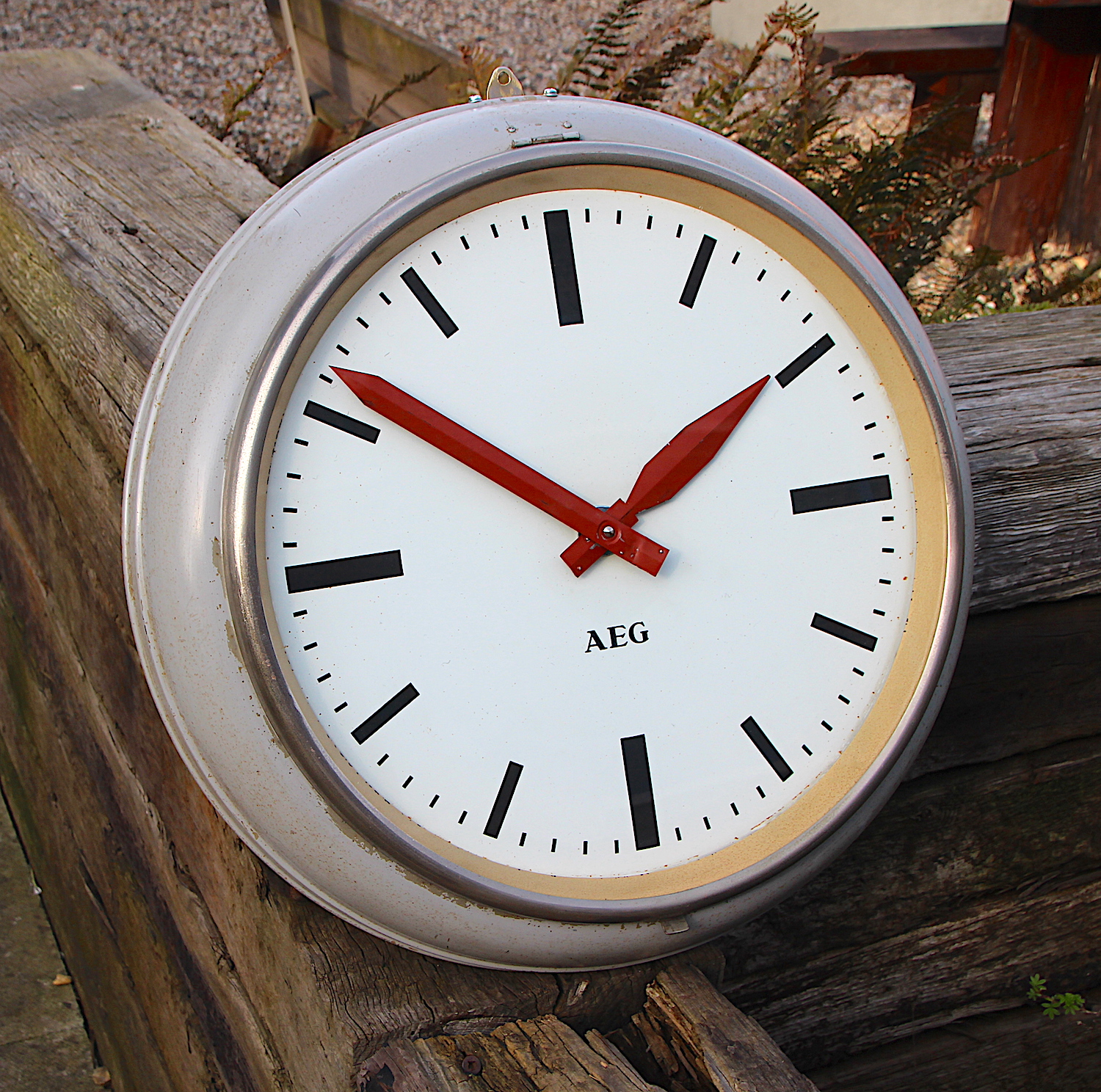 A really stunning factory/industrial vintage wall clock made by AEG in West GermanyThis model dates from the later 1950s/earlier 60s.